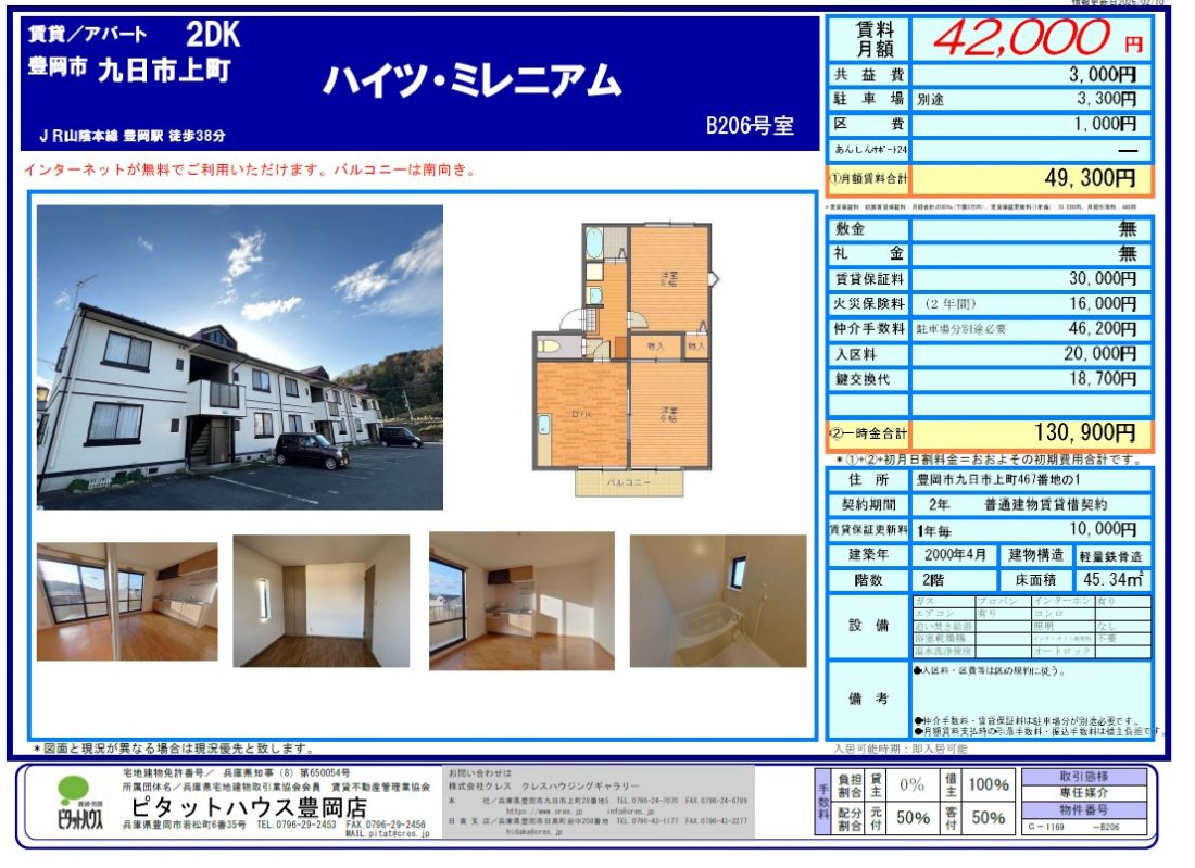 インターネット無料・全室洋室の2DK、即入居可 投稿日:2026.02.10|カテゴリ:耳より賃貸・売買不動産情報 九日市のインターネットが無料でご利用いただける2DK、敷金・礼金が無しになりました! バルコニーは南向きで、2階の角部屋に空きがございます。 全室洋室にリフォーム済みです。 敷金:なし 礼金:なし 賃料:42,000円 共益費:3,000円 駐車料:3,300円 室内のご案内もさせていただけます。 お気軽にどうぞ!